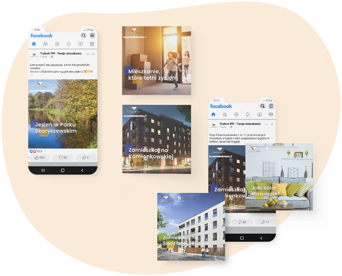 Implementation of effective communication on Facebook for the developer Tryboń PPI. The aim of the activities was to increase interest in the company’s offerings and increase brand recognition in the Warsaw market. At the time of the campaign, there was a boom in the real estate development market, so our activities had to stand out both with an interesting concept and a proposal of effective tools that helped us achieve our goal.