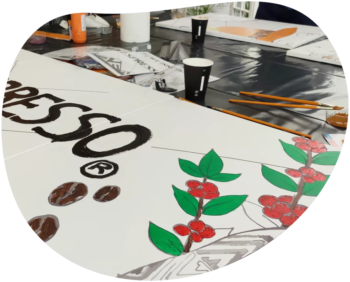 Powstałe obrazy zdobią ściany biura Nespresso i przypominają pracownikom zarówno o dobrej zabawie, jaką mieli w trakcie eventu oraz o tym, jak ważna we współpracy jest komunikacja.