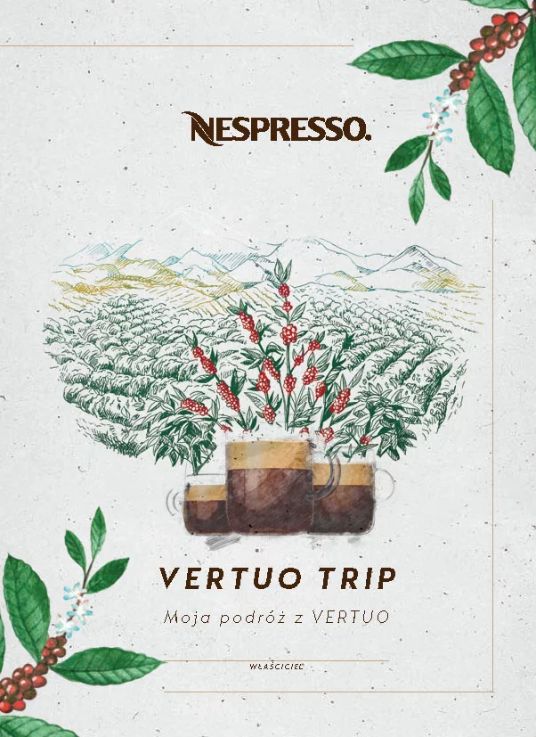 Na potrzeby akcji zaprojektowaliśmy KV, który był graficznym drogowskazem do przygotowania broszury informacyjno – edukacyjnej dla pracowników Nespresso. Wyjątkowa marka wymaga wyjątkowych materiałów, dlatego zamiast klasycznej broszury, przygotowaliśmy angażujący przewodnik po krainie Vertuo.