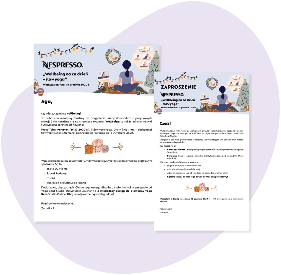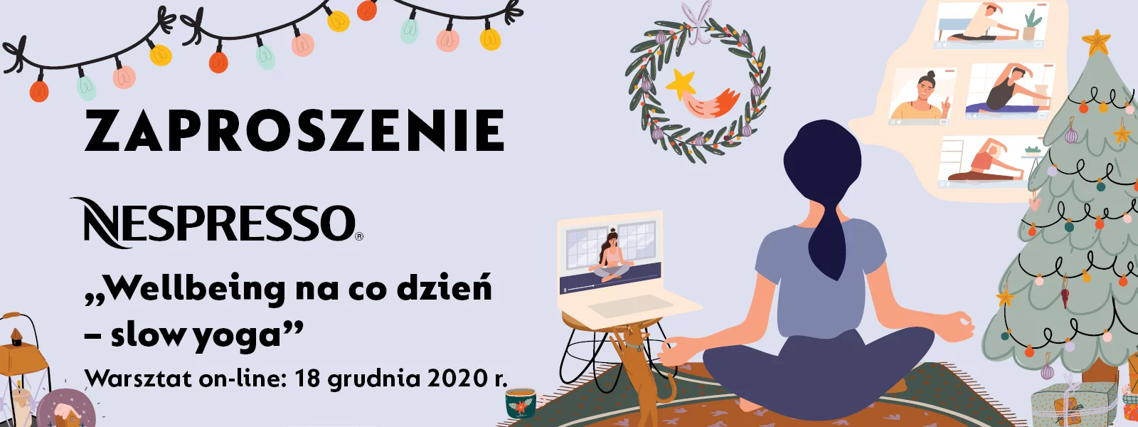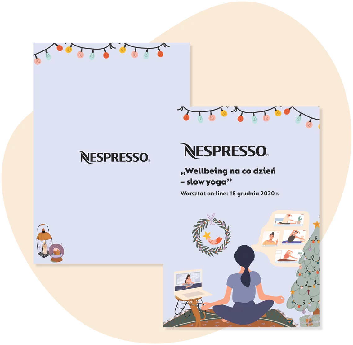 To nasz kolejny projekt dla Działu HR Nespresso. Tym razem z okazji świąt, które dla wielu z nas są bardziej znane pod hasłem „świąteczna gorączka”, Nespresso zaprosiło swoich pracowników do przejścia w tryb slow i wzięcia udziału w online’owych zajęciach jogi. Co my mieliśmy z tym spólnego?