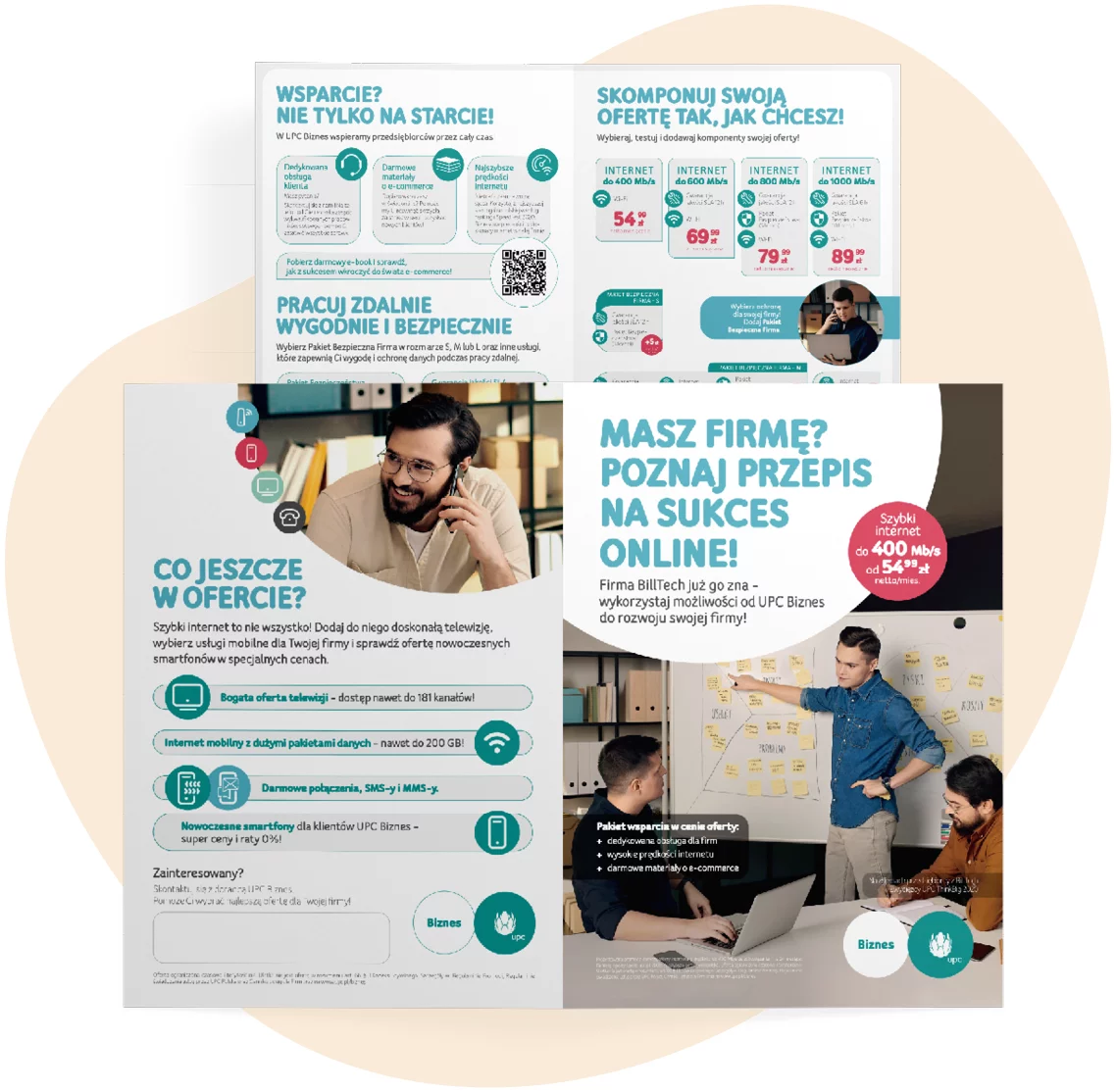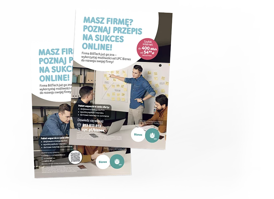 Planując pracę nad kampanią dla UPC Biznes, podjęliśmy z Klientem decyzję o zastąpieniu używanych dotąd zdjęć stockowych, zdjęciami realnych osób, które odnoszą sukcesy w biznesie. Zorganizowaliśmy dedykowaną sesję, do udziału w której zaprosiliśmy finalistę start up’owego projektu UPC Think Big, firmę BillTech.